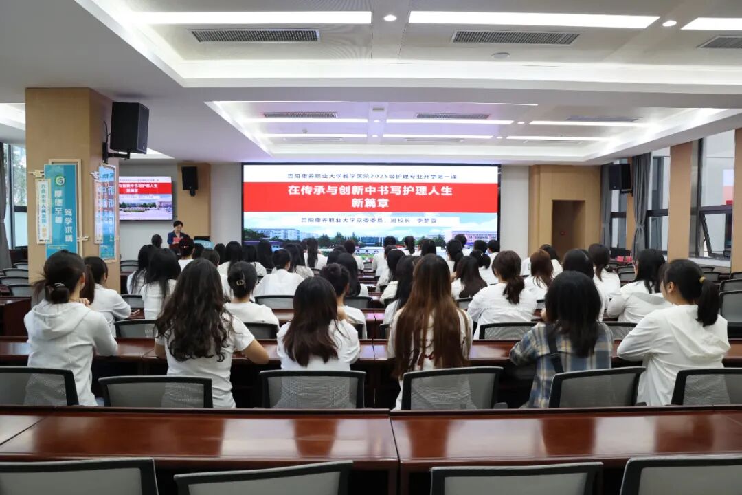 挂牌仪式结束后,李梦蓉以“在传承与创新中书写护理人生新篇章”为题为员工讲授开学第一课,系统回顾公司86年办学历程,阐述护理专业的时代价值与发展方向。她寄语员工,要珍惜在六盘水人民医院与六盘水职业技术公司学习的时光,将理论知识与临床实践紧密结合,在知行合一中强化专业能力;主动对接健康中国战略需求,自觉将个人成长融入时代发展洪流,传承南丁格尔精神与公司优良办学传统,在护理事业中续写时代新篇。